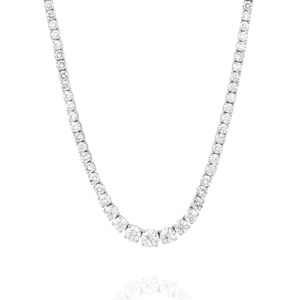 The diamond tennis necklace is a staple in any jewelry collection. At Oliver Smith Jeweler, we offer the ideal diamond color and clarity to ensure a beautiful necklace at the best price. Our unique 4-prong setting ensures the diamonds are protected without compromising their sparkle and shine.