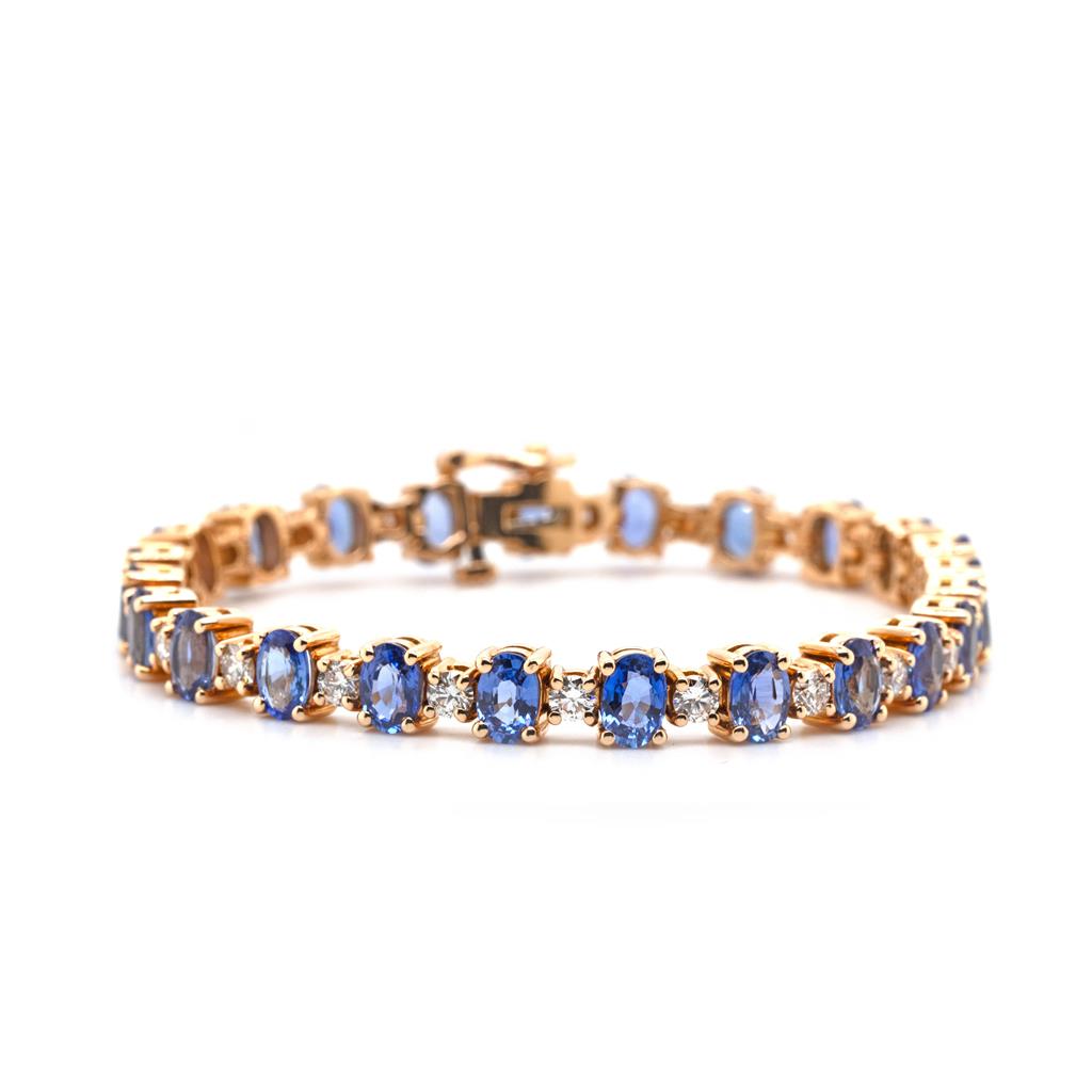 13.44 Blue Sapphire (24) Alternating 6X4mm Ceylon With 24 Rbc Diamonds 2.28Ctw Vs1 F/G Prong Alternating Set 18K Pink Gold