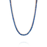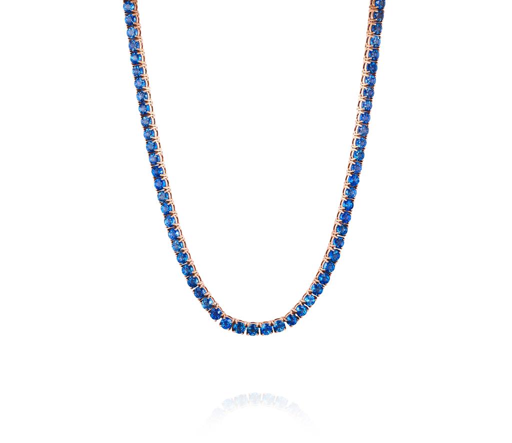 14 Karat Rose Gold Straight Line Riviera Necklace With Rbc Blue Sapphires 104 @ 38.61 Ctw 17 Inches Long With Box Clasp And Fold Under Safety Clasp