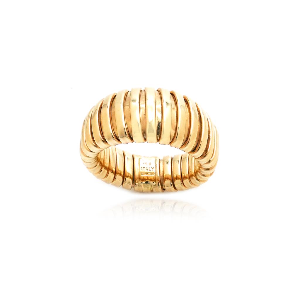 Estate Stretch Ring in 14K yellow gold. The ring tapers from 11.5 mm to 8.5.