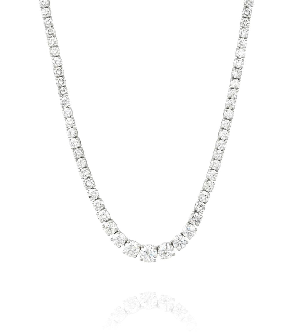 22.94ctw Platinum Graduated Diamond Necklace with natural round diamonds (SI1, G/H) four prong set