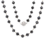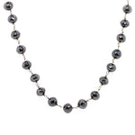 One of Oliver's signature men's jewelry designs, this 92-ctw diamond bead necklace features 46 round black diamond beads beads, each 6.5 mm in size, strung on 18K gold wire. It is finished with a ball-shaped clasp set with 1 ct of natural white diamonds.