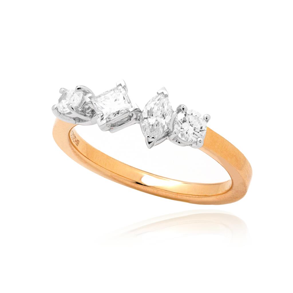 Bauhaus Ring With A Round, Marquise, Princess And Oval Diamond (.7Ctw, F/G, Vs1) Prong Set In 18 Karat White Gold On A 18 Karat Rose Gold Shank, Size 6.5