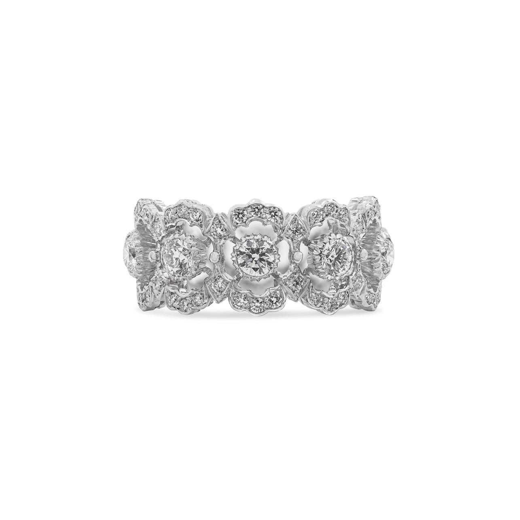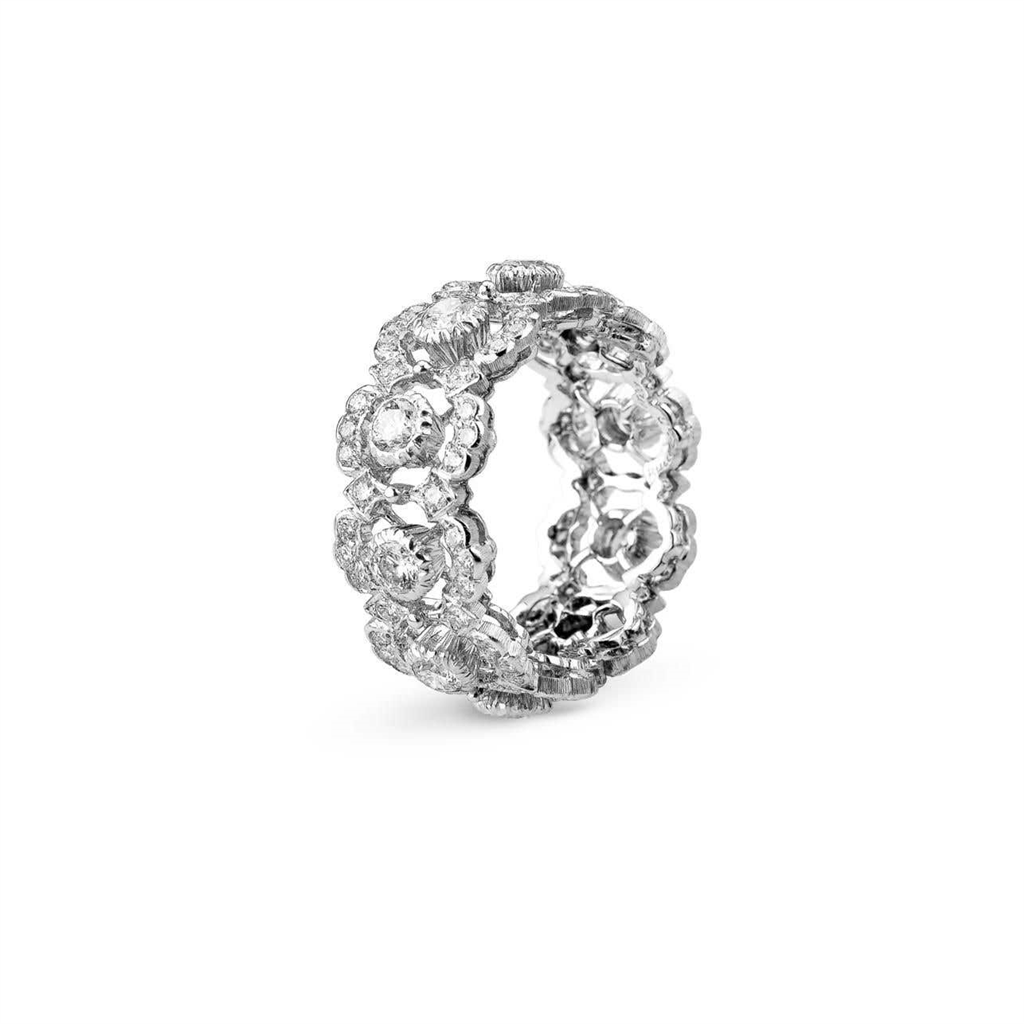 Ghirlanda is a historic design by Buccellati, born from the desire to accommodate and enhance the most important stones. Brilliant-cut Diamonds are suspended in a crochet design obtained with the ‘traforo’ technique. The skill of the craftsmen creates incredibly light jewels without weld joints.