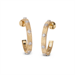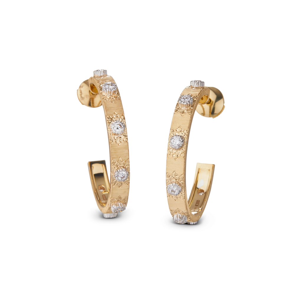 Macri Classica Earrings in yellow and white gold with diamonds with "rigato", "ornato" and "modellato" engraving. Width: 0.4 cm.