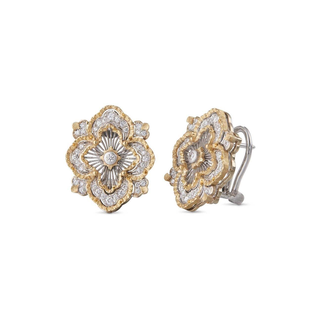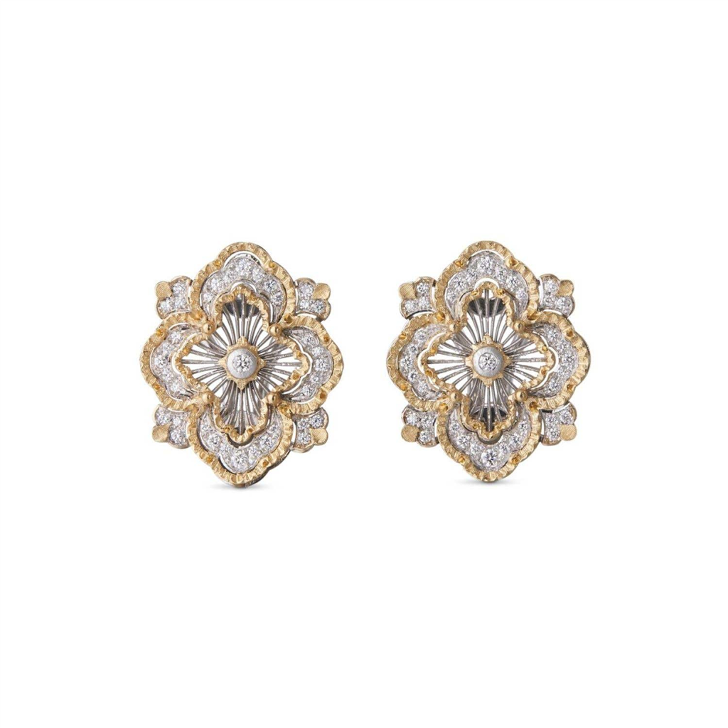 The iconic design of the Buccellati Opera collection lends itself to continuous interpretation, becoming an endless source of inspiration. The element of the Buccellati logo, with its Renaissance rose window, is conceived and reinterpreted to give life to new, unexpected and captivating creations. The stylistic features typical of Buccellati jewellery are still there, namely the alternation of contrasting gold colours, the radial tulle and the 'modellato' and 'rigato' engravings, which make this iconic model a veritable treasure chest of creativity, craftsmanship and beauty.
