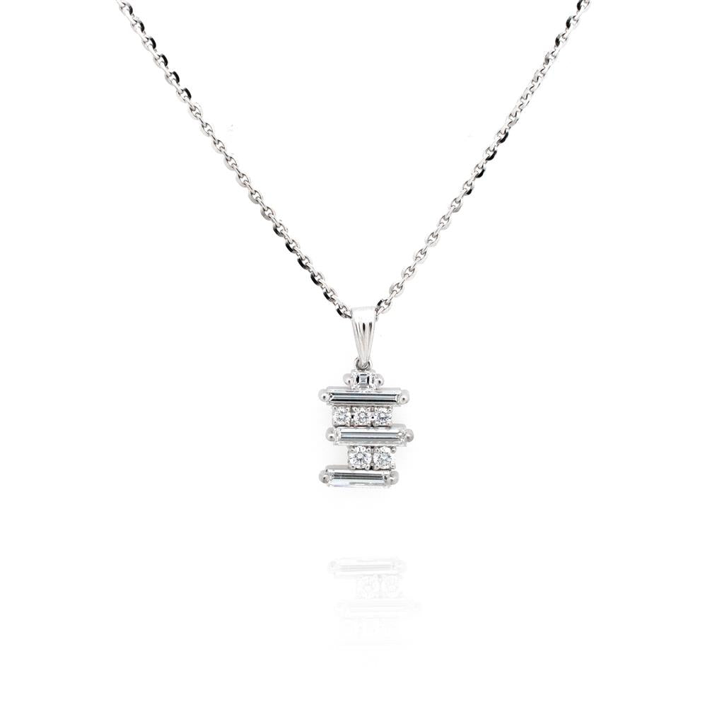 Cairn Pendant With Nine Natural Straight Baguettes And Round Brilliant Cut Diamonds (.89Ctw, F/G, Vs) Set In 18K White Gold.