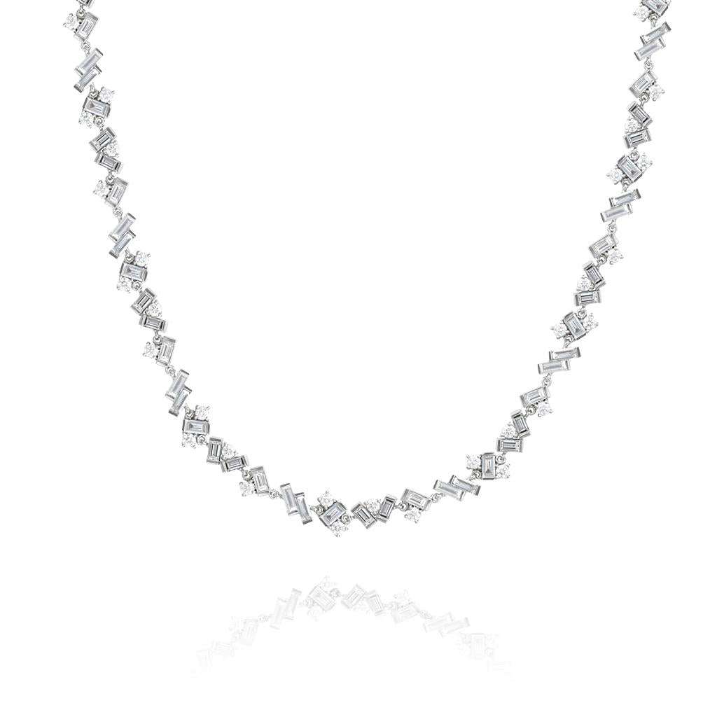 Oliver Smith Cairn Stepping Stone Diamond Link Necklace with baguette and round diamonds (13.18ctw, VS, F/G) set in 18 karat white gold, 16 inches