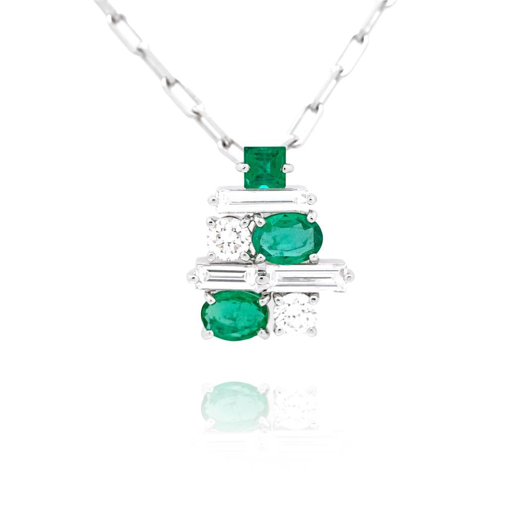 Lady's White Gold 18 Karat Free Form Pendants With 5 = 0.77Tw Various F/G Vs1 Diamonds And 3 = 0.81Tw Various Shapes Green Emeralds