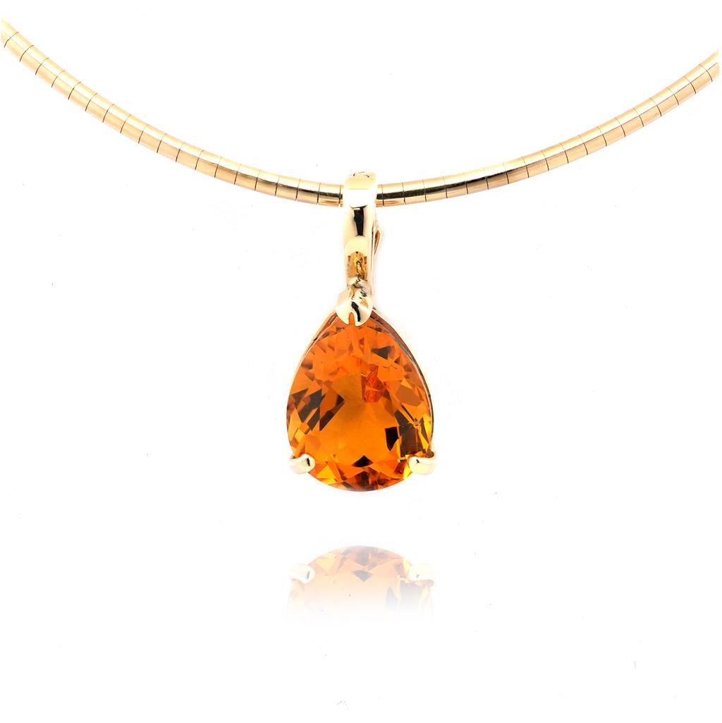 Estate 14k yellow gold and Citrine pendant. The pendant is 3 prong set with a pear shaped cut Citrine. The Citrine measures approximaley 16.14 mm x 11.4 mm (longest and widest points) in size