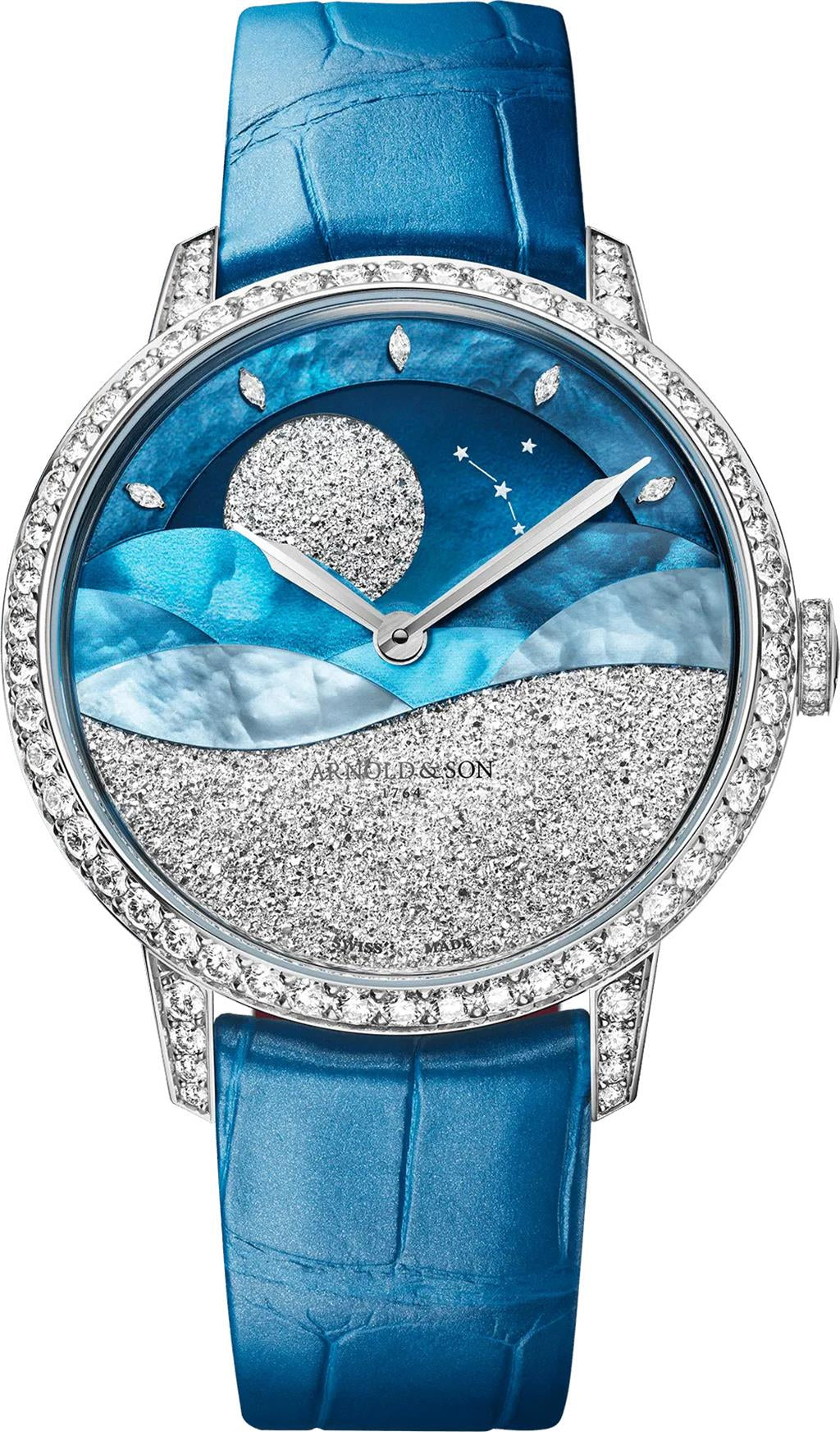Dial: Ruthenium Crystals And Mother-Of-Pearl Marquetry Tinted In Graduated Shades Of Green And Blue