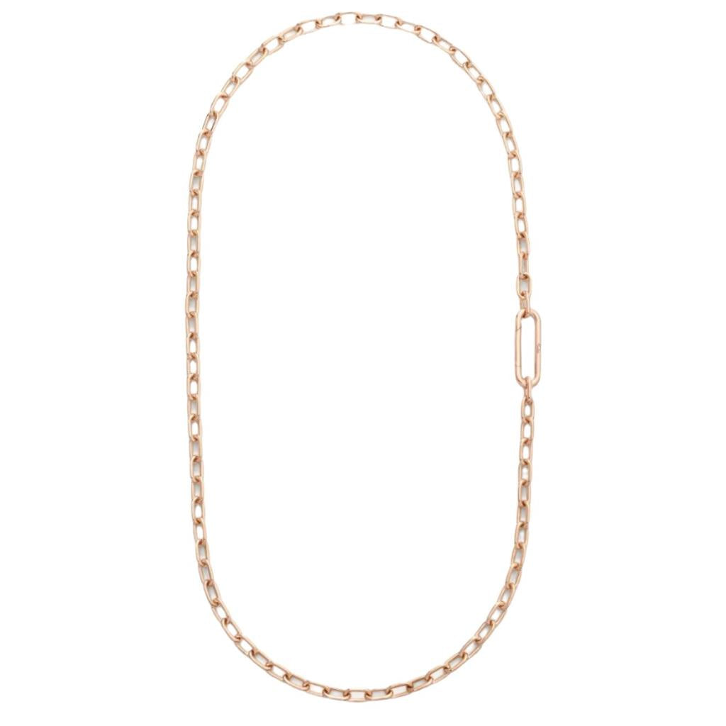 The chain necklace in rose gold features the distinctive outsize link snap-closure of Iconica, the simple lines are gender-fluid and their universal appeal is instantly evident. Essential and refined, inspired by Milanese design.