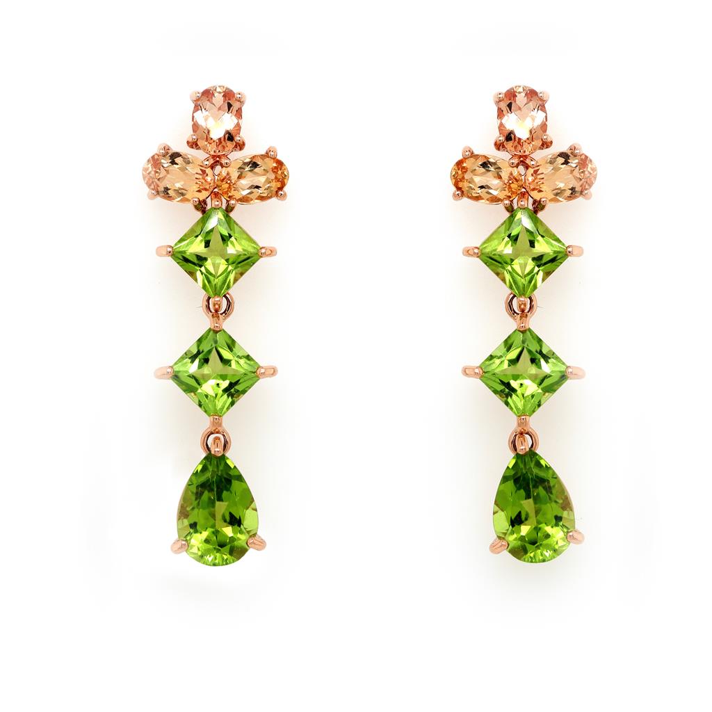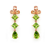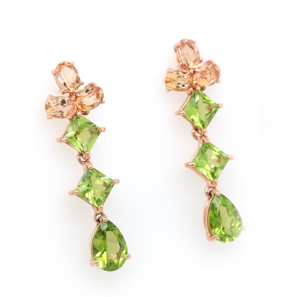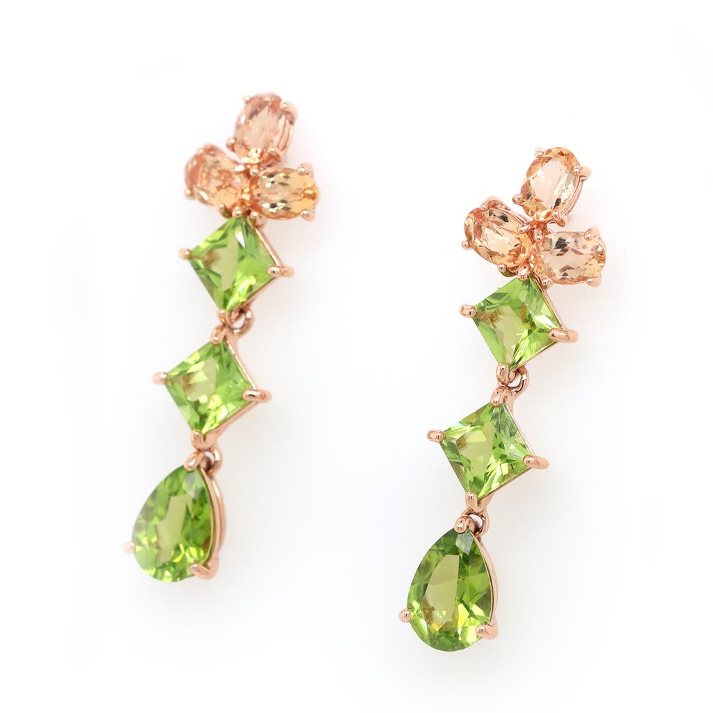 Oliver Smith 18 Karat Rose Gold Drop Earrings With A Top Element Formed Of 3 Oval Golden Topazes In Basket Settings (6@ 3.51Ctw) With A Line Of Dangling Square And Pear Cut Peridots In Basket Settings (6 @ 7.88Ctw0 Earrings Have Standard Posts And Friction Backs