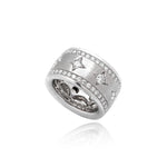 Oliver Smith 18 Karat White Gold Stardust Band, 13Mm Wide With A Center Brushed Section With Star Set Round Diamonds All The Way Around 8 Rbc Dia @ 0.93 Ctw F Si1, With Two Rows Of Pave Set Rbc Dia And High Polished Edges, 60 @ 1.5 Ctw F Vs1, Ring Is Open Work On The Inside, Finger Size 7