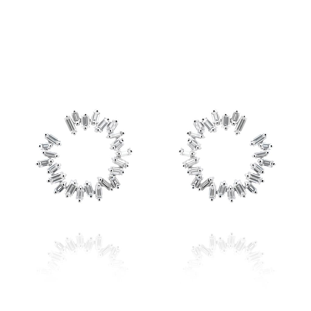 Oliver Smith 18 Karat White Gold Cairn Collection Earrings In The Form Of A Circle Of Prong Set Tapered Baguette Diamonds, 50 @ 1.71 Ctw On Post With Friction Backs