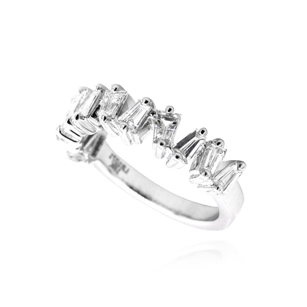 Oliver Smith Cairn Collection 18 Karat White Gold Band With Baguette And Round Brilliant Cut Diamonds On The Top 3/4 Of The Band In Prong Settings Totaling 27 @ 2.13 Ctw F/G Color Vs Clarity, Band Has European Style Shank Finger Size 7
