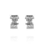 Oliver Smith Cairn Collection 18 Karat White Gold Curved Stud Earrings Of Stacked Diamonds In Prong And Channel Settings ( 10 Round Brilliant Cut Diamonds @ 0.17 Ctw F/G Color Vs Clarity, Baguette Cut Diamonds 8@1.03 Ctw F/G Color Vs Clarity And Princess Cut Diamonds 10@ 0.78 Ctw F/G Color Vs Clarity) With Posts And Friction Backs