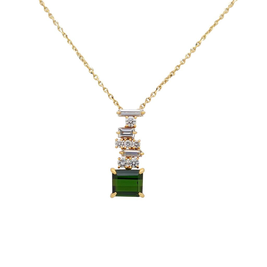 Oliver Smith Cairn Pendant In 18K Yellow Gold With Round And Straight Baguette Cut Diamonds (.79Ctw) And One Green Tourmaline (2.55Ctw).