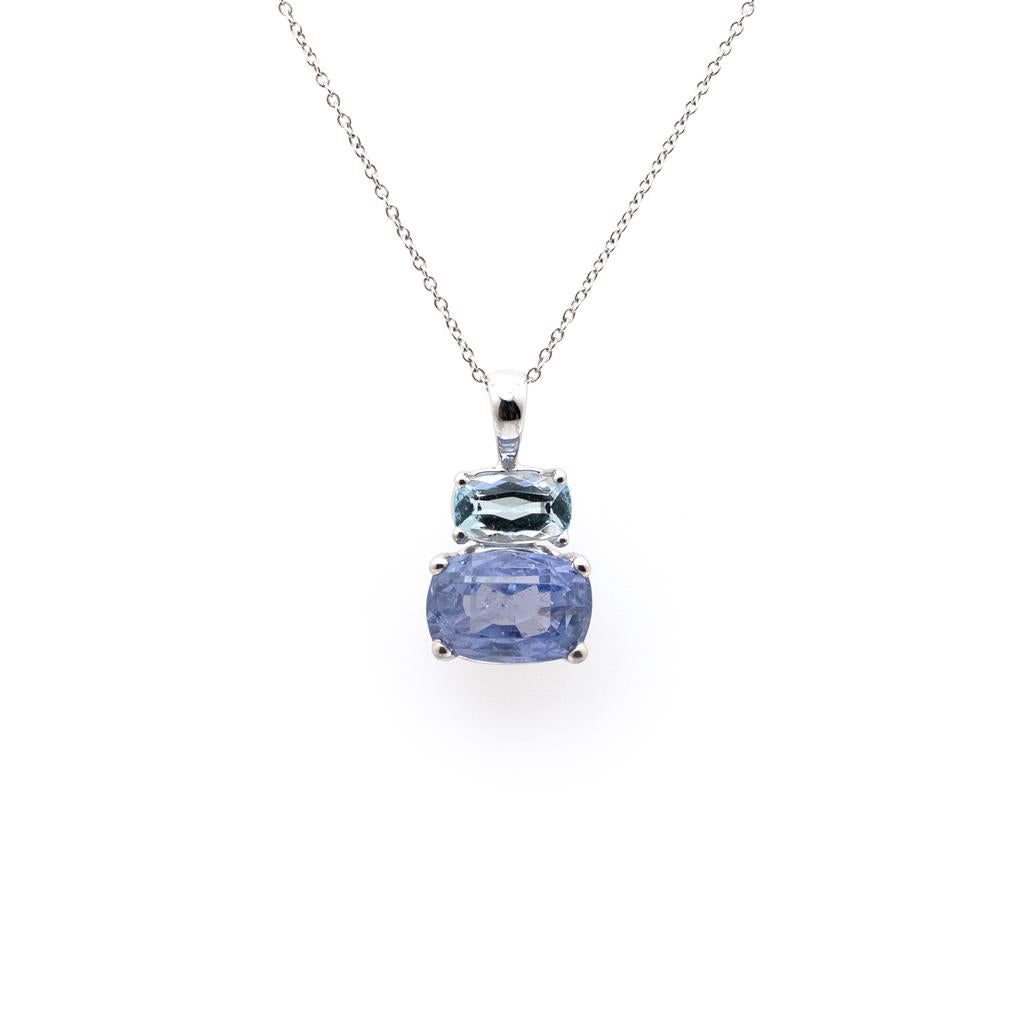 Oliver Smith Prism Pendant With One Lavender Sapphire (6.66Ctw) And One Aquamarine (1.03Ctw) Set In 14 Karat White Gold.