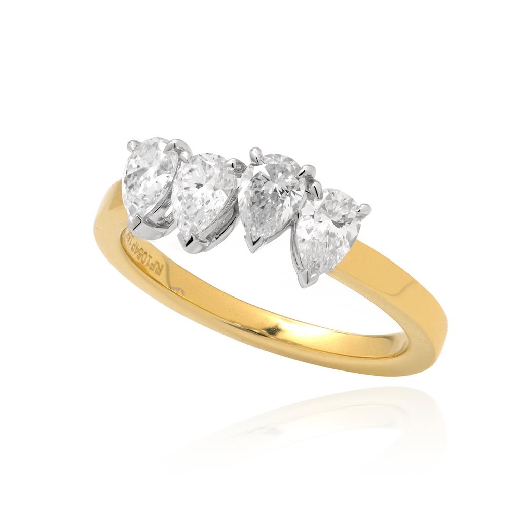 Pear Cut Diamond Band With Four Natural Diamonds (.96Ctw, F/G, VS1) Prong Set In 18 Karat White And Yellow Gold, Size 6.5