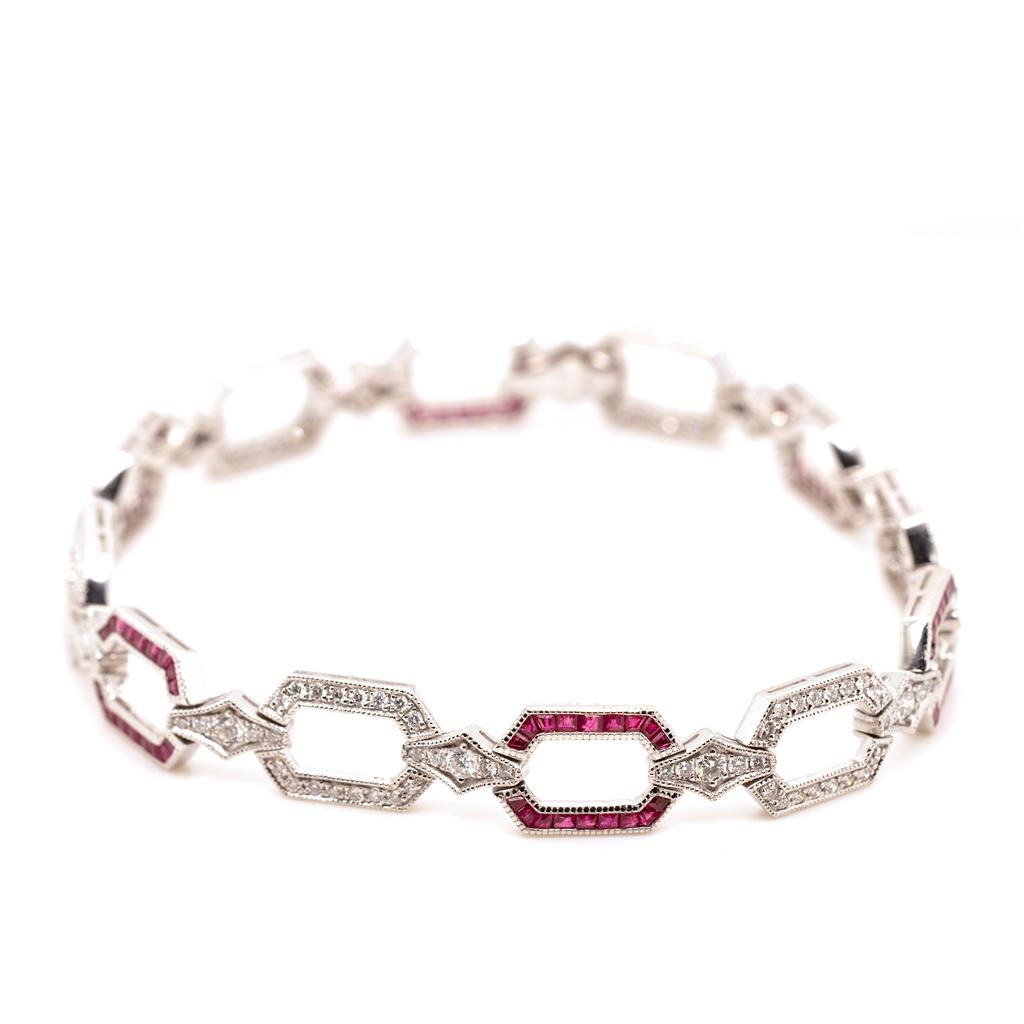 Platinum Ruby and Diamond link bracelet (Ruby 1.96ctw, Diamond 1.16ctw, SI1, G/H)