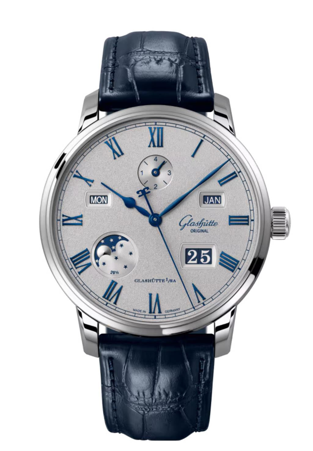 Complications: Hour, Minutes, Seconds, Panorama Date, Moonphase and Perpetual Calendar