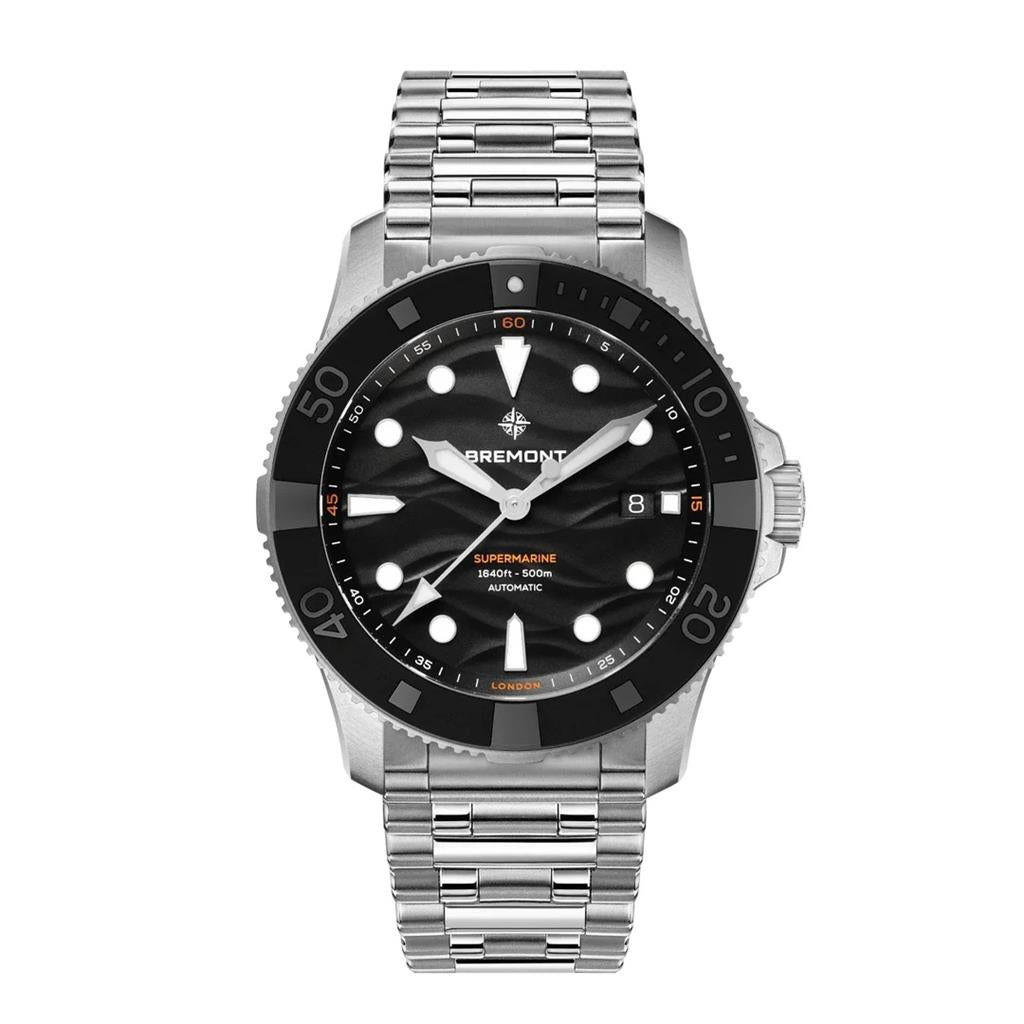 Dial: Black 3D wave pattern dial with applied indexes infilled with white Super-LumiNova Blue emission