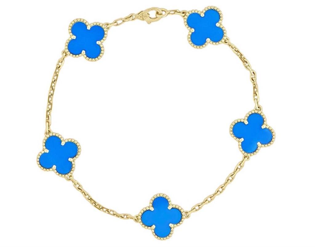 Van Cleef and Arpels Al Hambra Bracelet with five blue agate motifs set in 18 karat yellow gold, reference vcarp34900