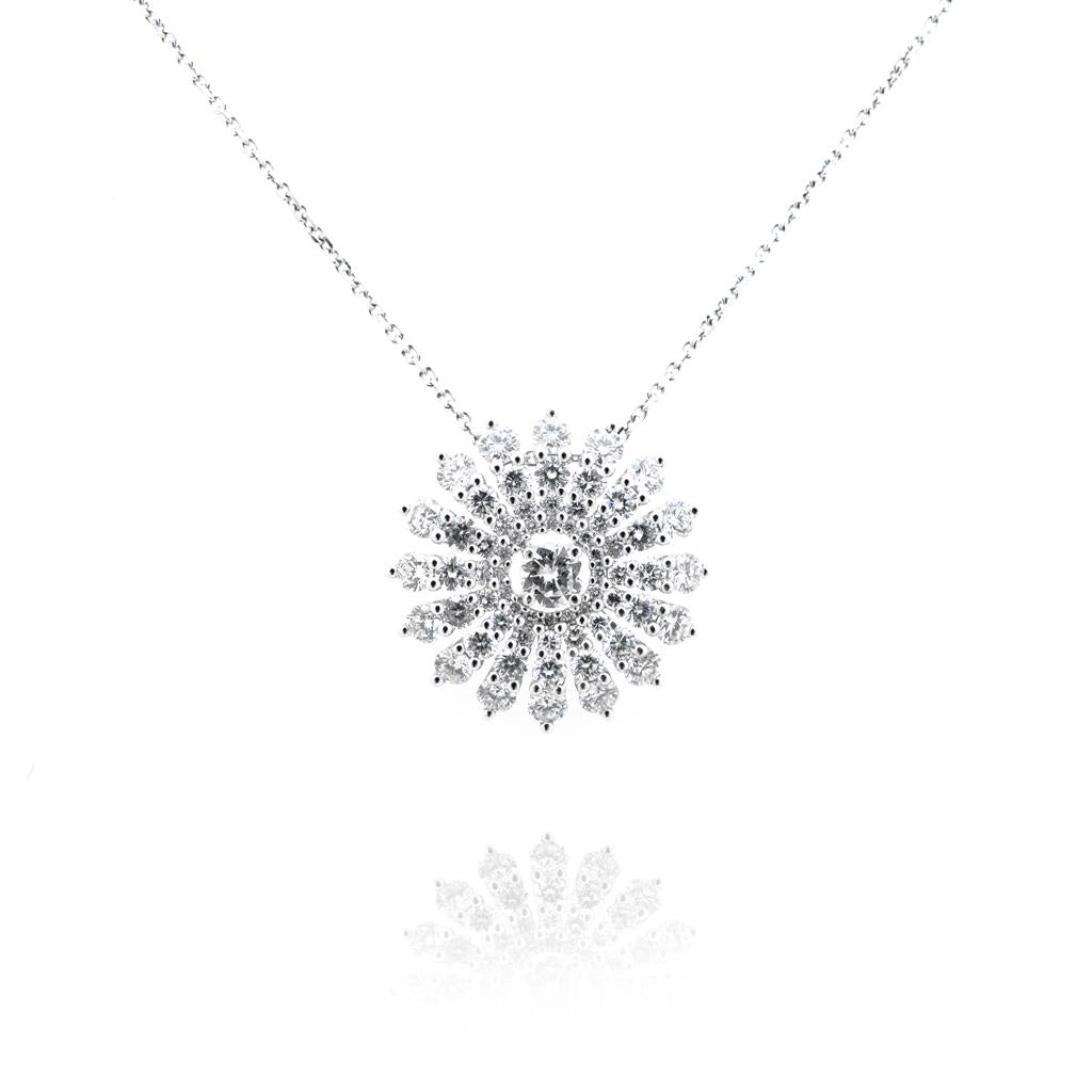 White Gold 18 Karat Flower Pendant on open link chain Length 16 With 65=1.80Tw Round Brilliant Diamonds