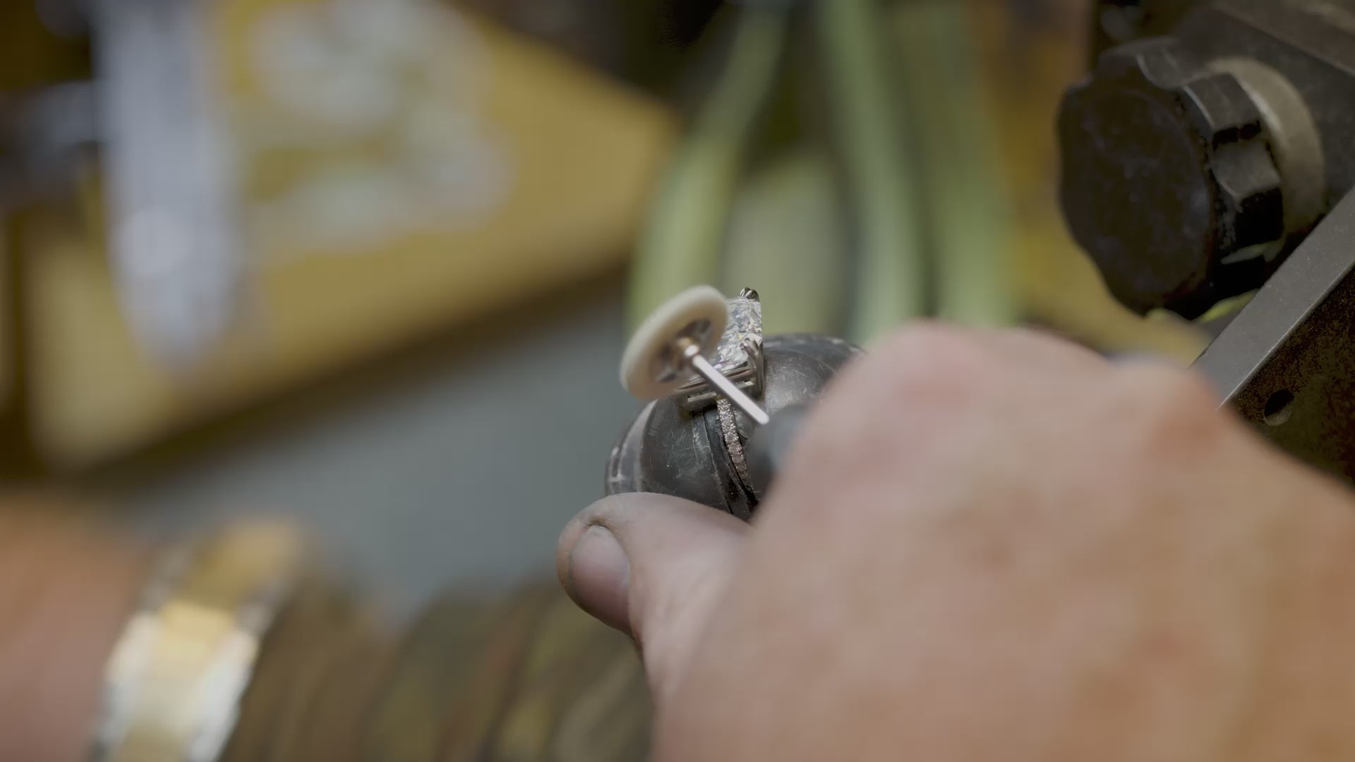 Next, your chosen diamond is expertly set into your custom design.